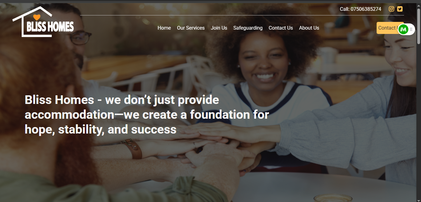 Bliss Homes is a supportive living service based in Kent and London, dedicated to empowering young people in transition—particularly those with mental health challenges, learning disabilities, sensory impairments, or those transitioning out of care—to live independently and confidently. The website I built offers a compassionate, streamlined digital experience that communicates trust, values, and professional care.